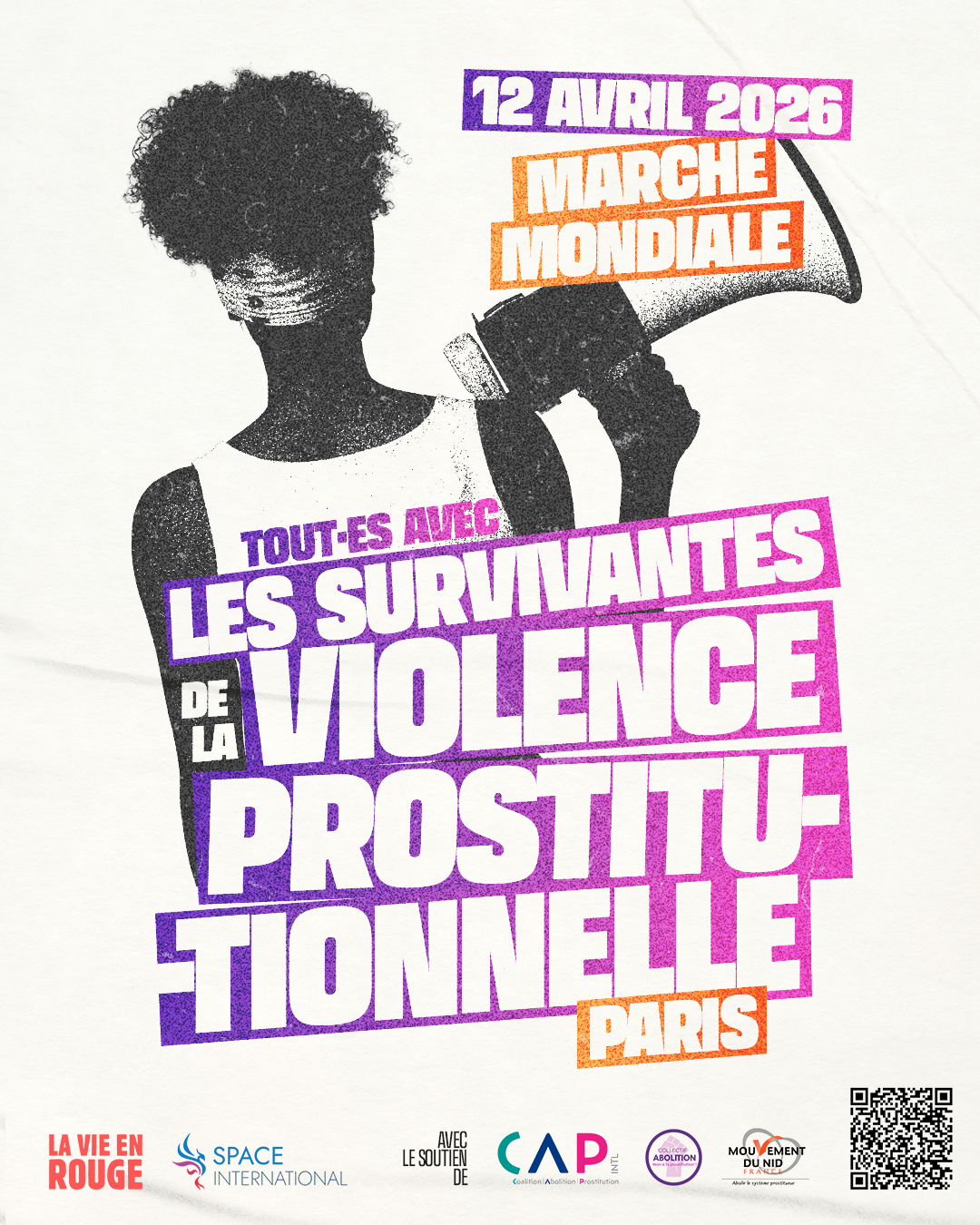 A 12 de abril de 2026, uma marcha global pela abolição do sistema de prostituição reuniu sobreviventes e pessoas aliadas nas ruas de Paris, unidas por uma reivindicação comum de justiça social, igualdade e dignidade. Esta mobilização internacional enviou uma mensagem forte: reafirmou a abolição do sistema de prostituição a nível mundial e expressou uma solidariedade inabalável com todas as vítimas da sua violência.