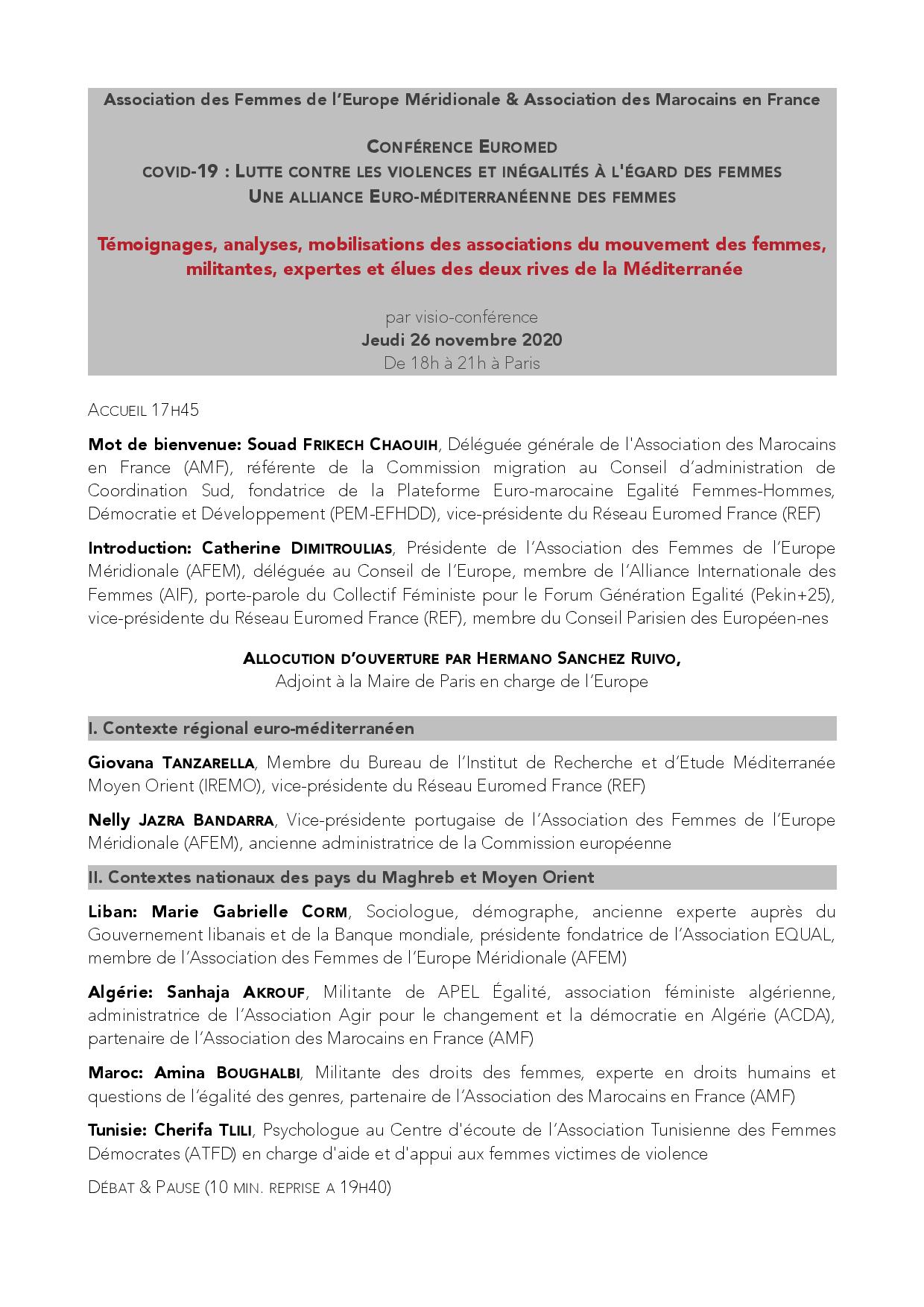 AFEM: Covid-19 : Lutte contre les violences et inégalités à l’égard des femmes Une alliance Euro-méditerranéenne des femmes