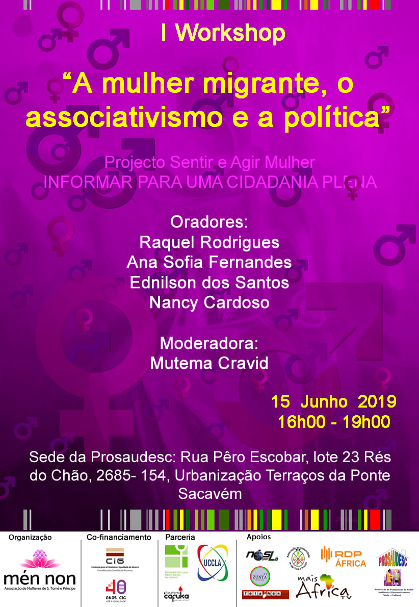 A Associação das Mulheres de São Tomé e Príncipe – Mén Non convida para um workshop sobre a mulher migrante, o associativismo e a política no âmbito do projeto Sentir e Agir Mulher – Informar para uma cidadania plena. Ana Sofia Fernandes participa em representação da PpDM.