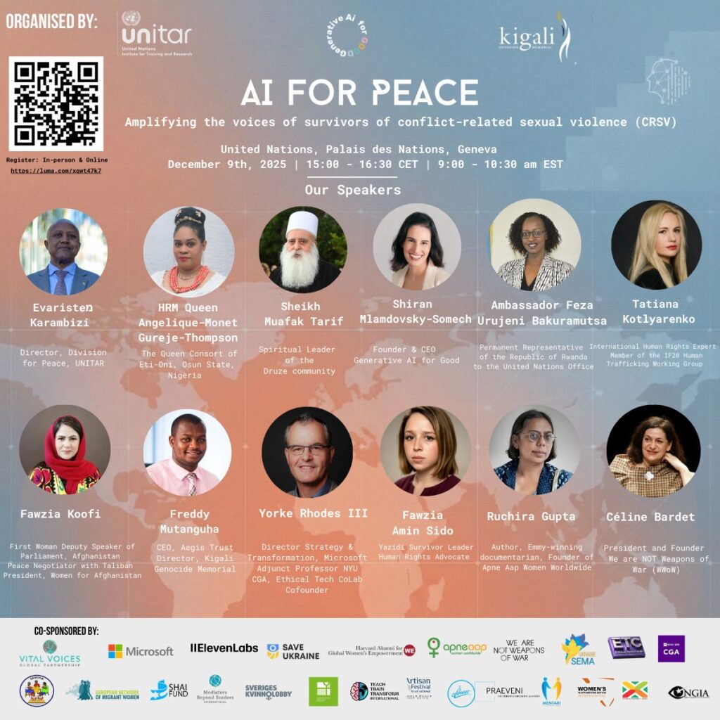 Promovido pelo Instituto das Nações Unidas para Formação e Investigação (UNITAR), Kigali Genocide Memorial e Generative AI for Good, e co-patrocinado pela Plataforma Portuguesa para os Direitos das Mulheres (PpDM). O evento, presencial e online, reúne decisoras e decisores de política, especialistas em IA, sociedade civil e defensoras/es de sobreviventes para discutir como a IA ética e a inovação tecnológica podem ser usadas para prevenir a violência sexual relacionada com conflitos, apoiar a agenda “Mulheres, Paz e Segurança” e promover a Paz. Link para inscrições.