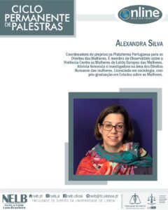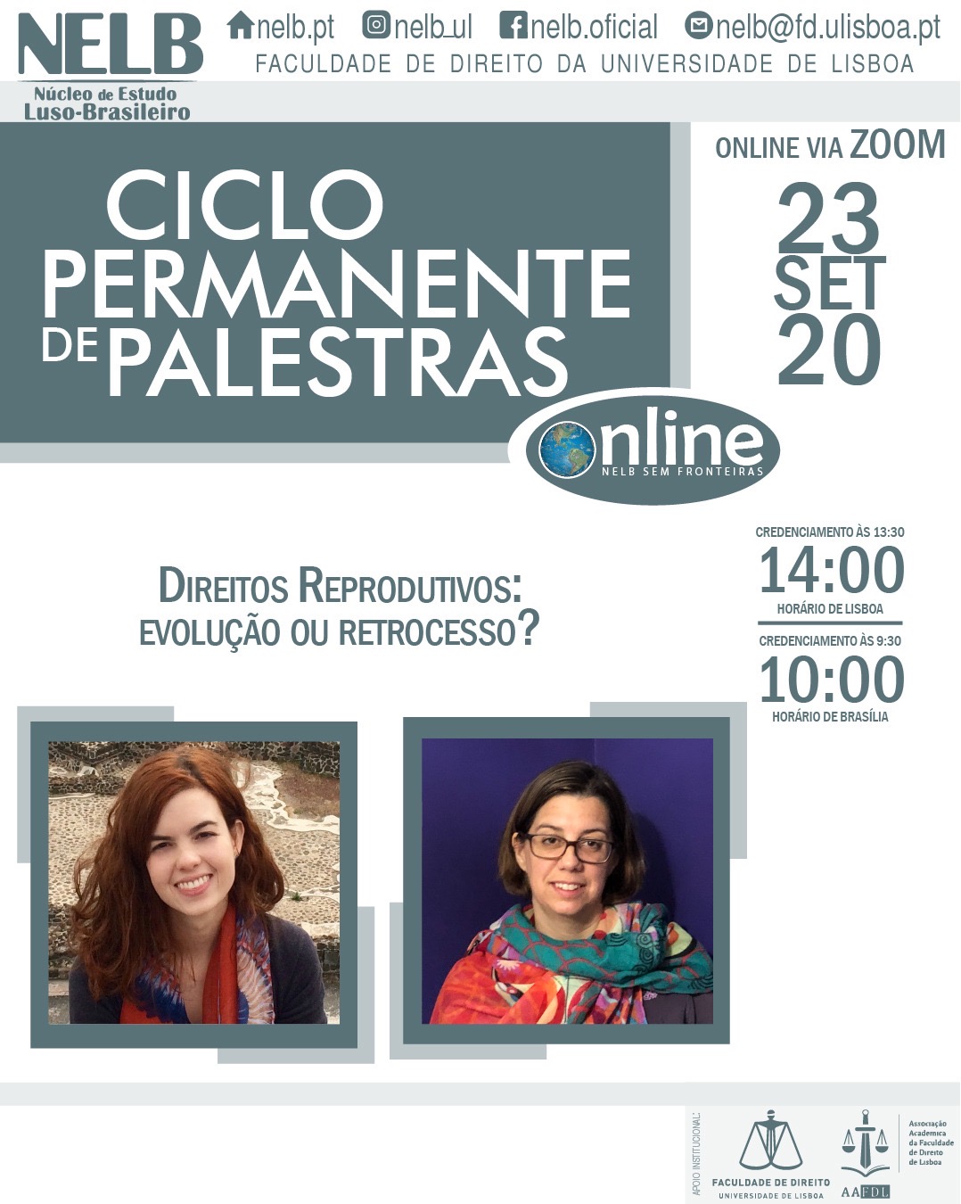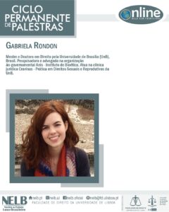 Conferência promovida pelo Núcleo de Estudo Luso-Brasileiro da Faculdade de Direito da Universidade de Lisboa, que integra o Ciclo Permanente de Palestras que tem o intuito de aprofundar assuntos e permitir o debate, que muitas vezes não é possível em congressos e colóquios, dado o tempo curto das palestras e o espaço reduzido para interação com as e os ouvintes. O objetivo é permitir o debate através de um modelo de aula expandida, com dois ou três conidadas/os. Inicialmente, cada convidada/o apresenta uma introdução do tema a partir de sua perspectiva em um tempo máximo de trinta minutos. Em seguida, o/a mediador/a abre a mesa para perguntas e propostas do público. A previsão de tempo do evento é de três a quatro horas.