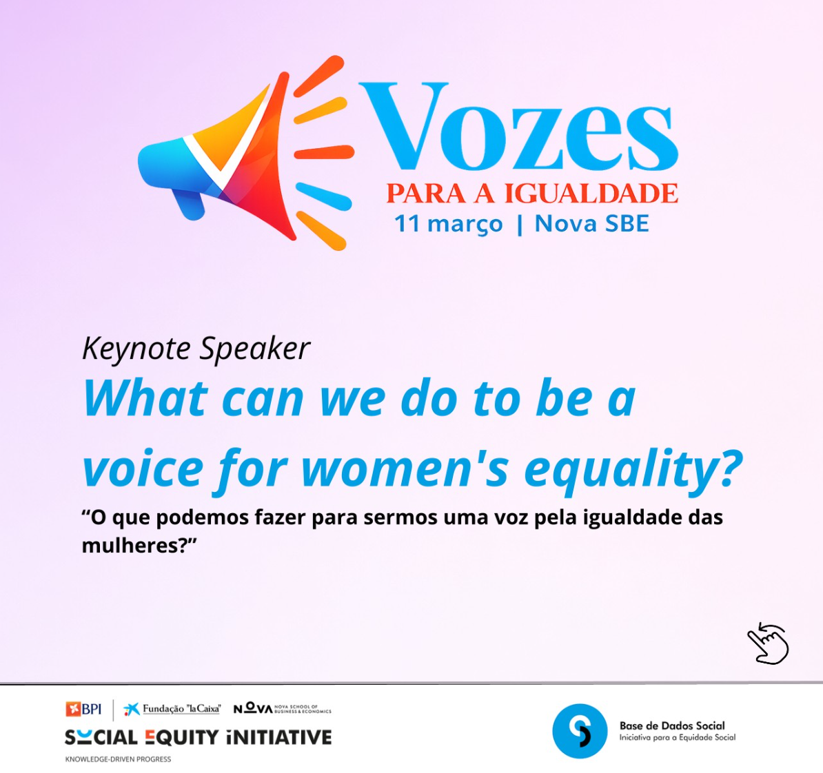 A participação é gratuita, mediante inscrição prévia em https://www.basededadossocial.pt/questionario/vozes-para-a-igualdade