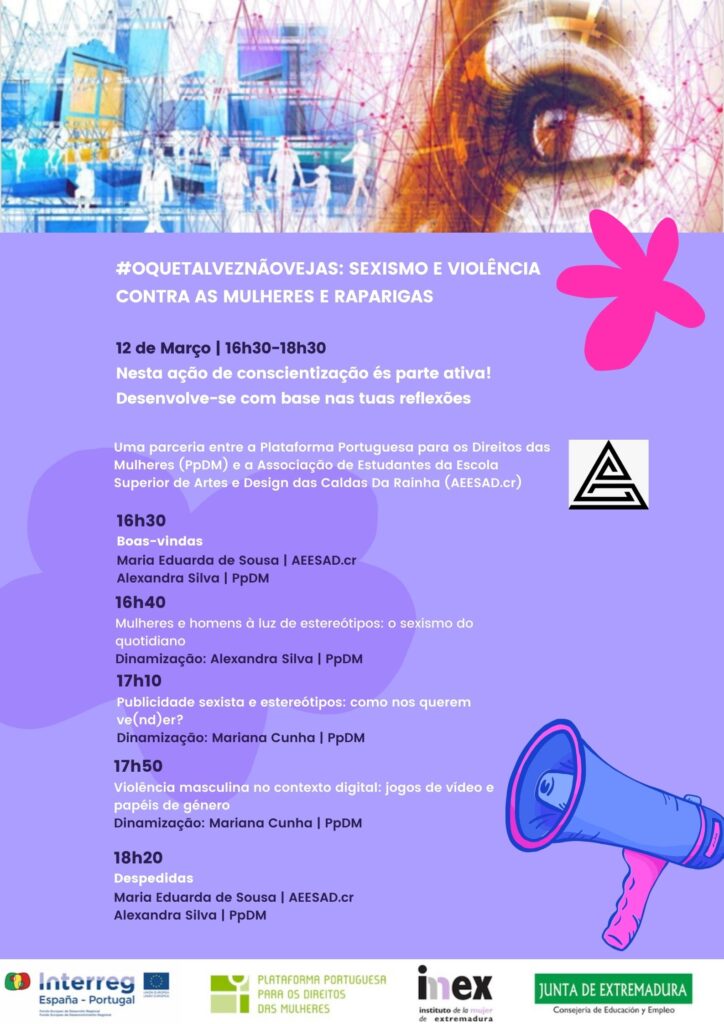 Ação de conscientização online #OQueTalvezNãoVejas sobre o impacto do sexismo e dos estereótipos de género na violência contra as mulheres e raparigas, co-organizado com AEESAD.cr