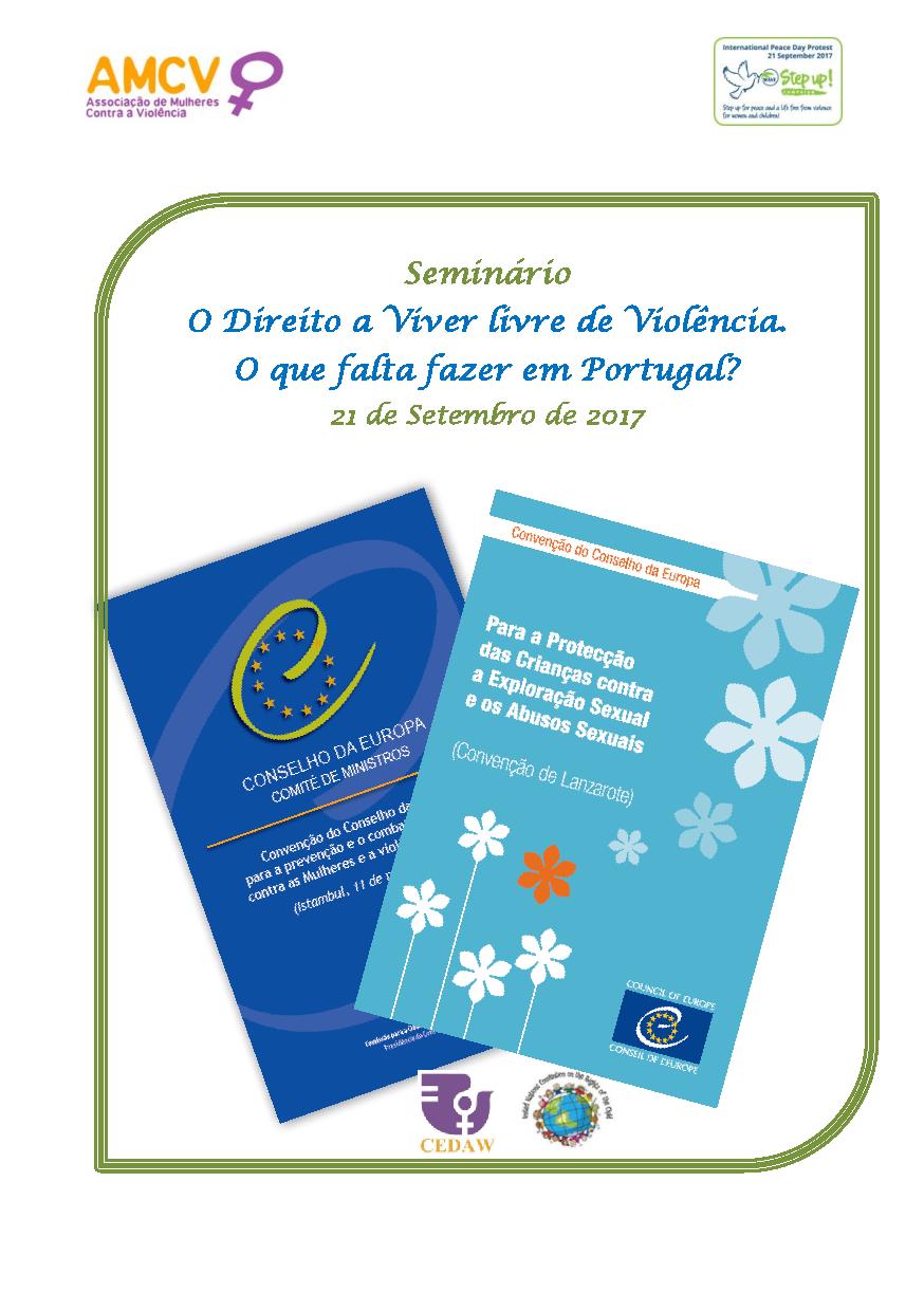 A AMCV – Associação de Mulheres Contra a Violência convida para o Seminário “O Direito a Viver livre de Violência. O que falta fazer em Portugal?” a realizar-se no âmbito da Campanha Step Up!, no dia 21 de Setembro de 2017 das 14h00 às 17h00, na atmosfera m Lisboa.